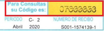 Ingrese el código que se encuentra en la parte superior derecha de su recibo.